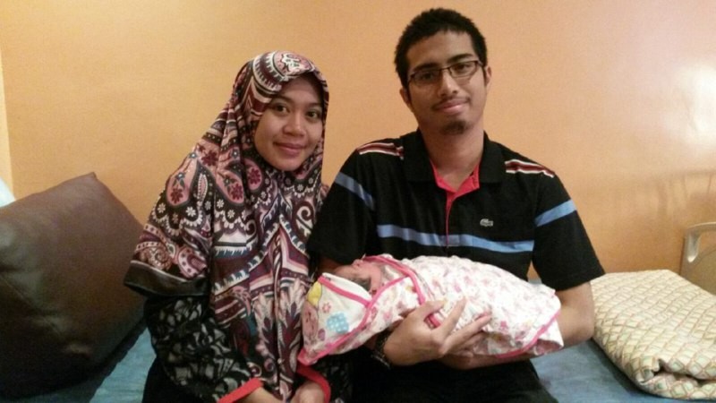 Muhammad Kamil dan Nurul Sheila bersama puteri sulung mereka di kediaman mereka di Abasiyyah.