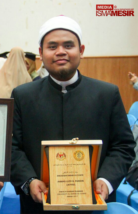 Kaherah, 23 September | Baru-baru ini, Anugerah Imam Syafie telah menjadi milik saudara Ahmad Lutfi bin Paridin yang merupakan pelajar terbaik keseluruhan fakulti Syariah Islamiah dalam Majlis Konvokesyen kali ke-11, Graduan Malaysia Universiti Al-Azhar di Dewan Malaysia Abbasiah Kaherah (DMAK).